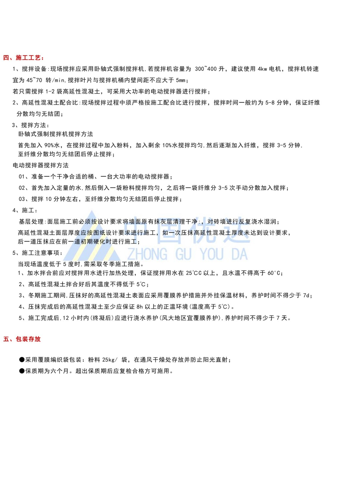 輔助高韌性高彈性纖維和外加劑混合而成,現場加水固化后,具有裂而不斷、破而不碎的特性,用于各加固修補的梁板柱以及路面的修補。