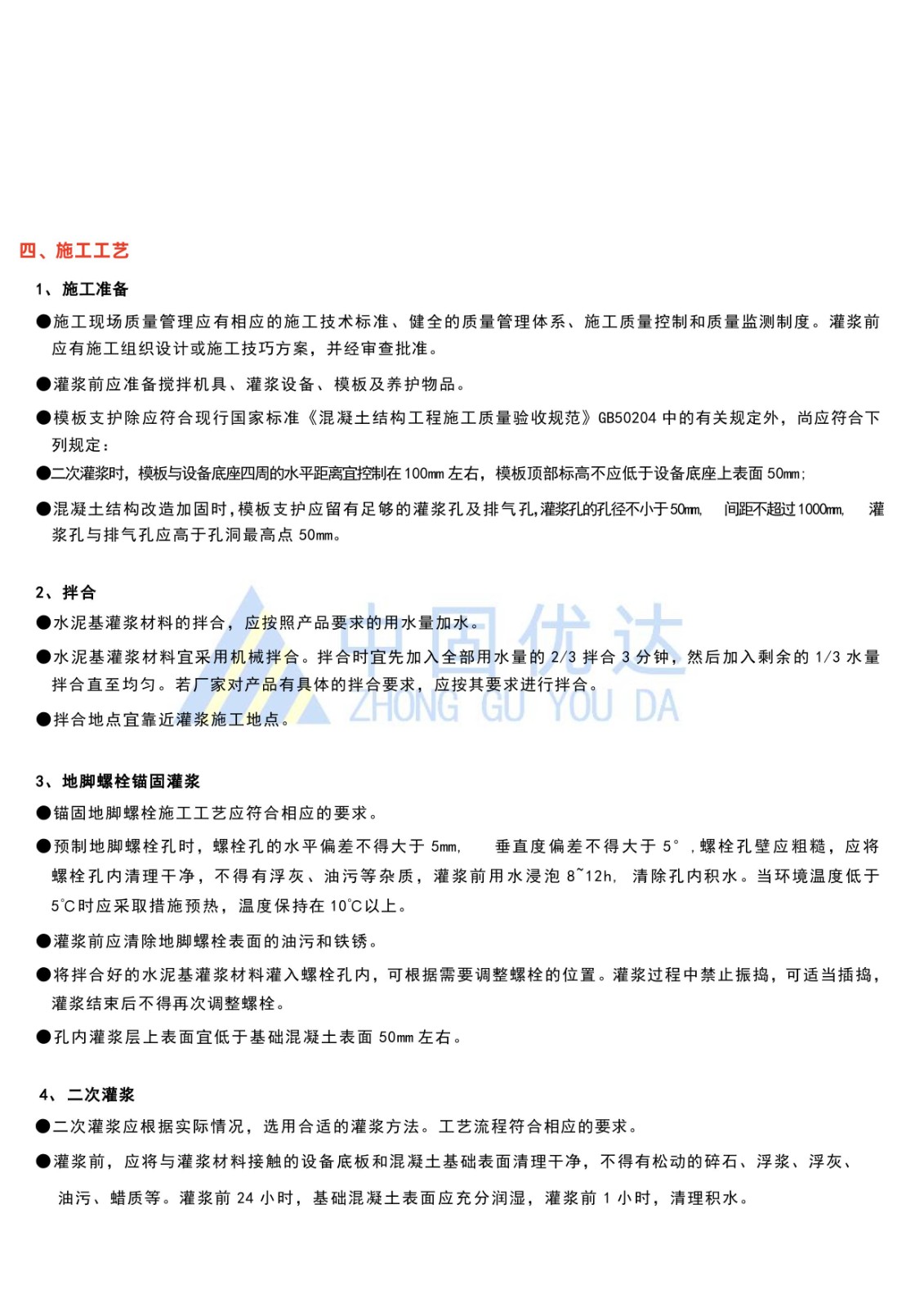 2、灌漿料成分規格不同,水料要嚴格按著使用說明配比;